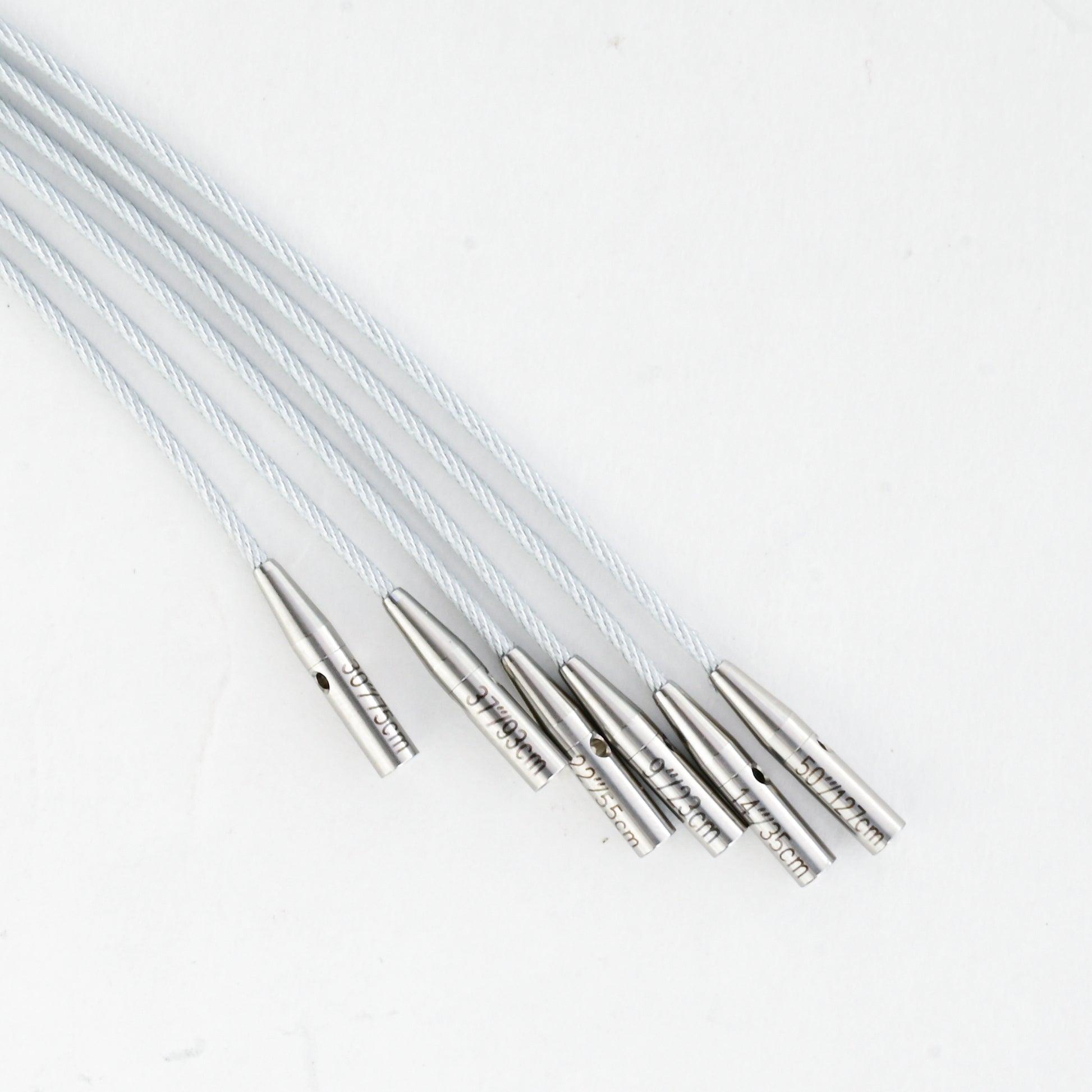 *Nylon-coated, flexible, smooth and strong cables in silver color