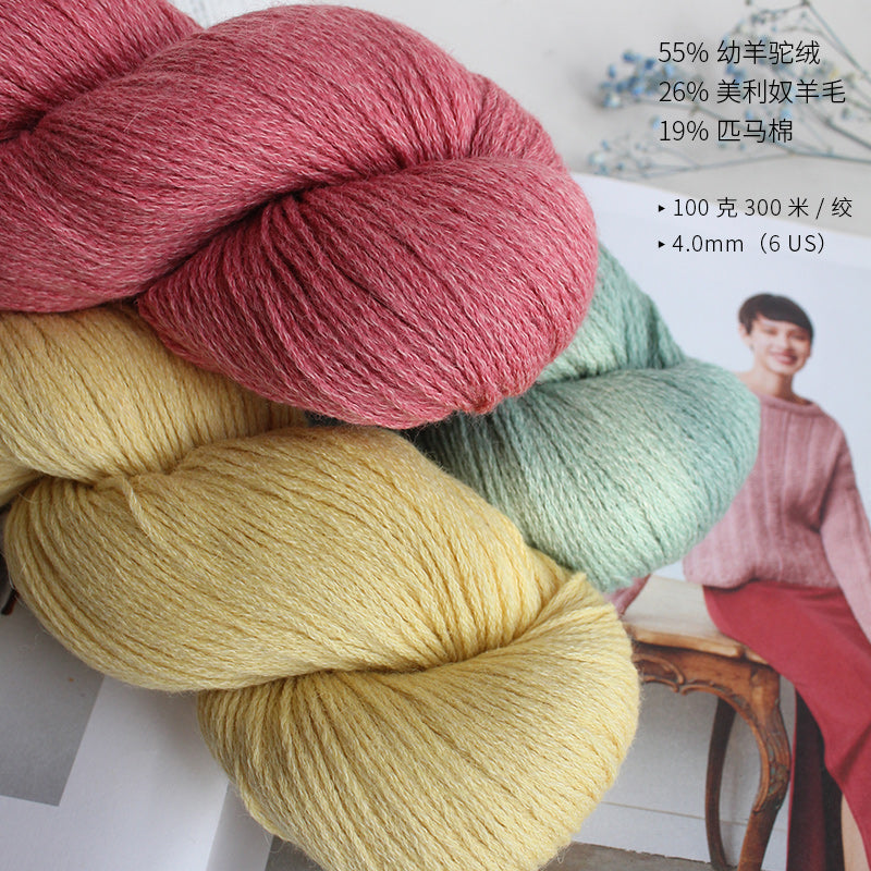 Fiber: 55% Baby Alpaca - 26% Merino Wool - 19% Pima Cotton