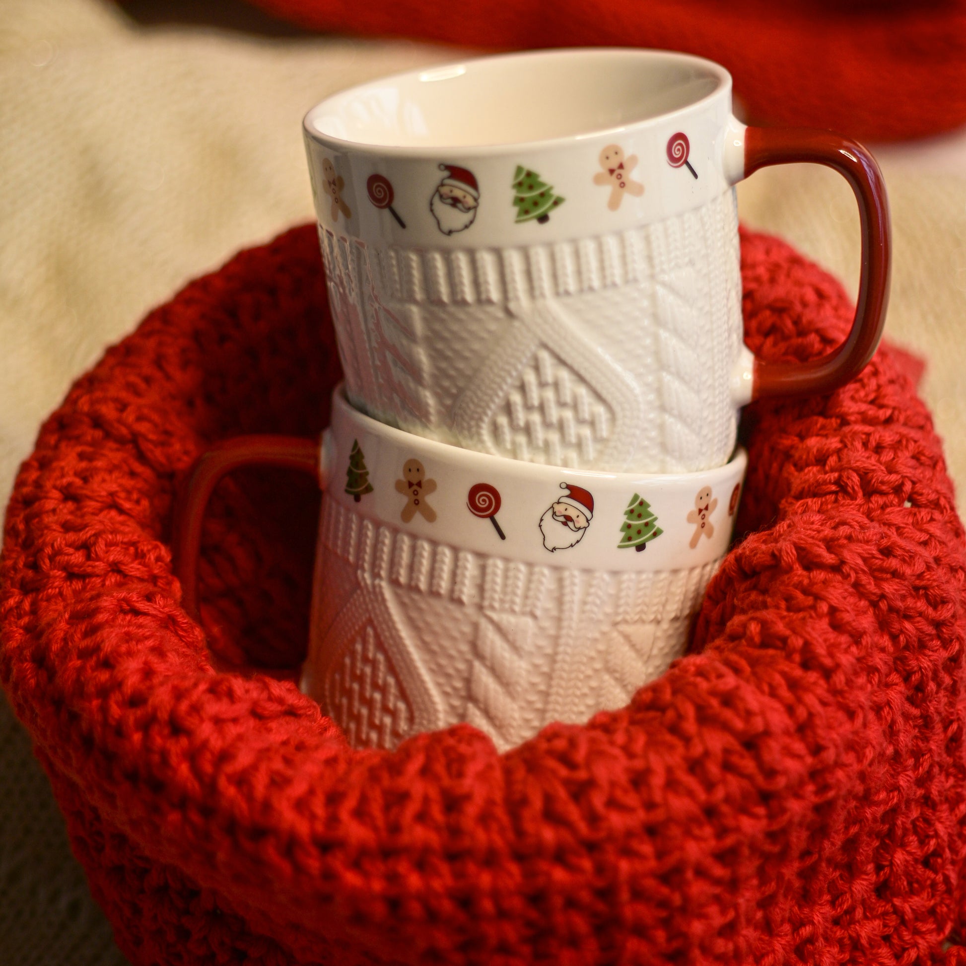 Festive Christmas Knit-Pattern Ceramic Mug Set