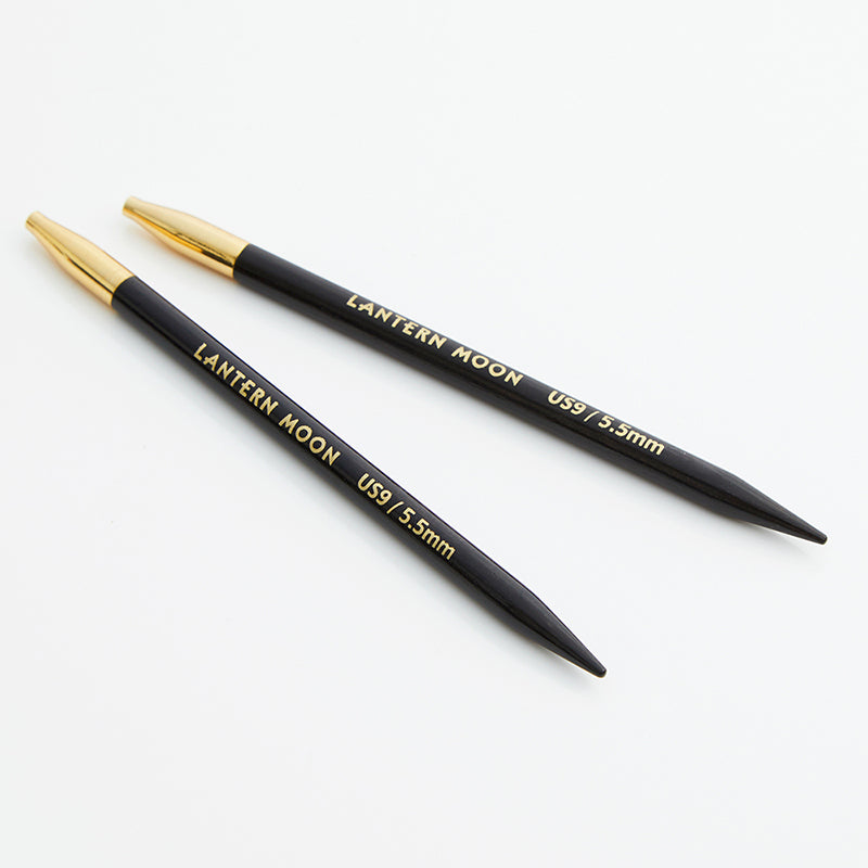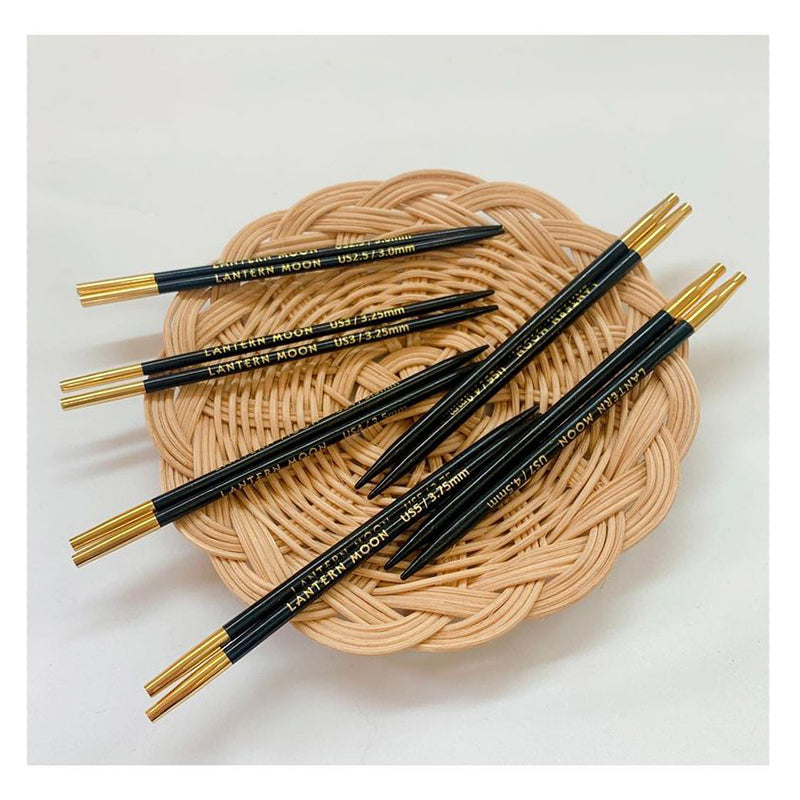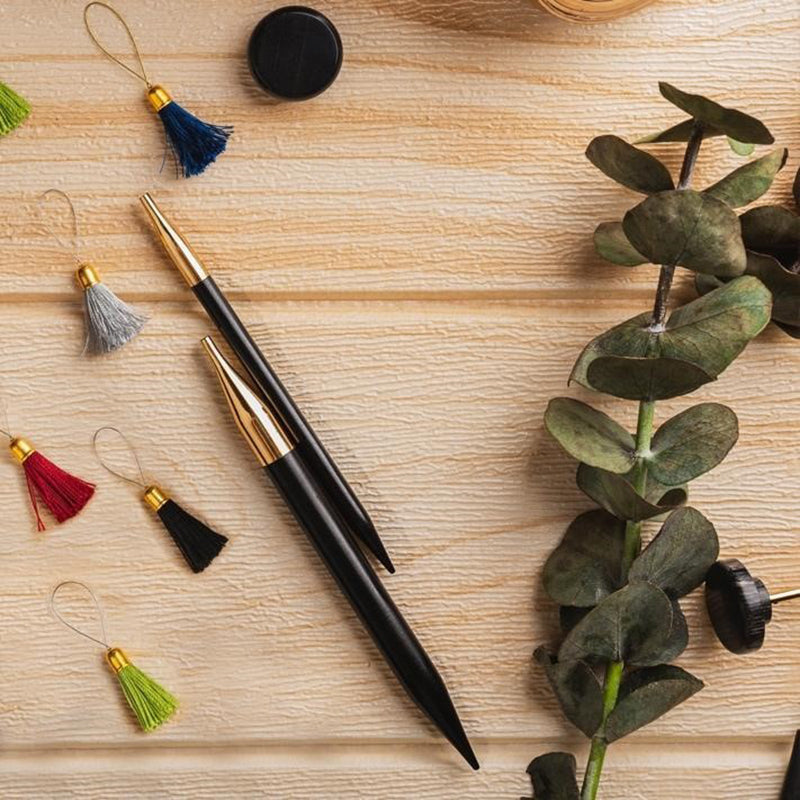 Lantern Moon’s interchangeable circular knitting needles are made of Ebony wood, one of the world’s most valuable materials. The liquid silk finish of these lightweight interchangeable circular needles and the 24K finish on the brass connector, guarantees snag-free knitting. The interchangeable circular needle’s smooth cord never twists thanks to a swivel connector, and it lies flat for easy storage. Smoothly honed and shaped needle tips work well with all yarns.