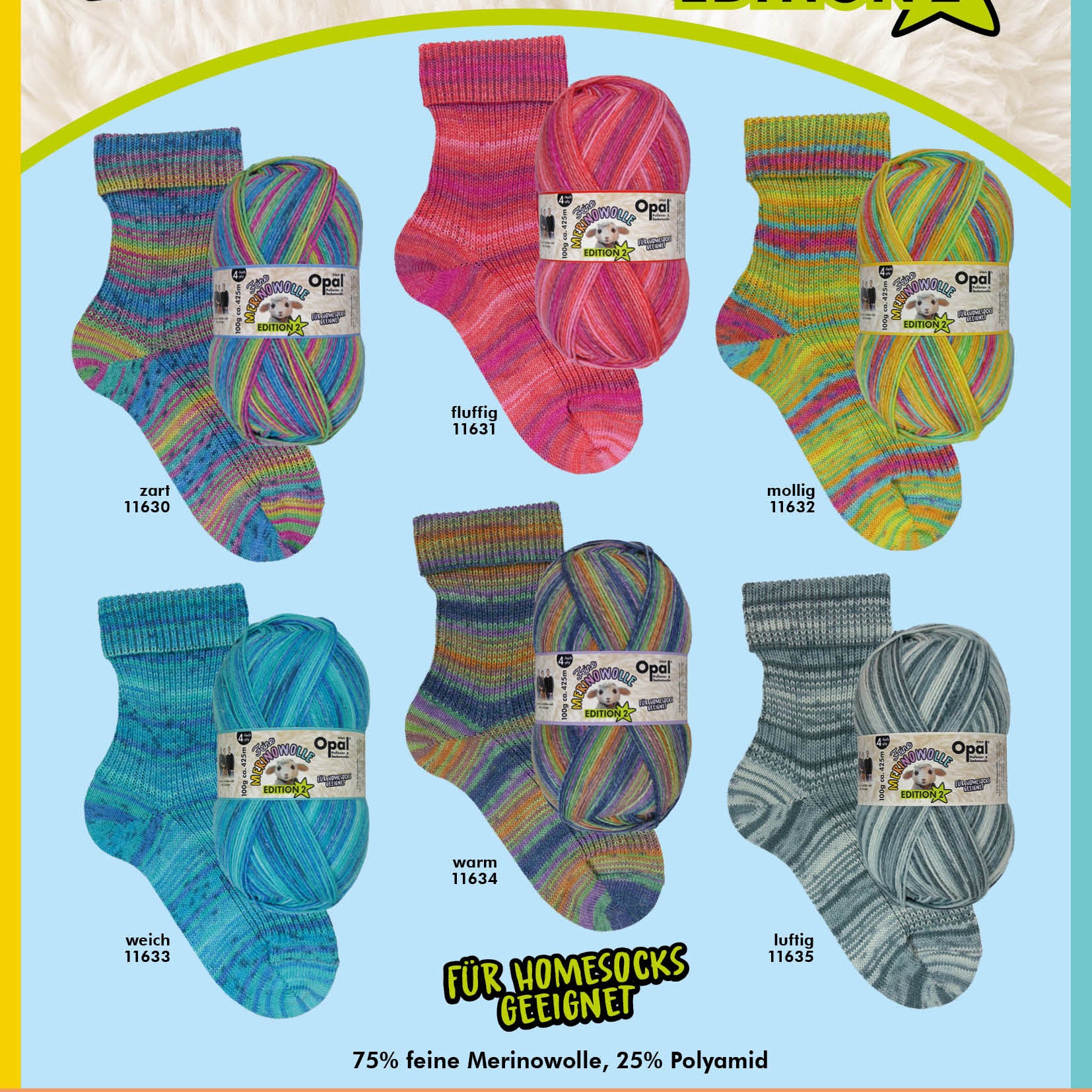 Opal Fine Merino Wool Edition 2 consists of three tone-on-tone colorways and three vibrant variegated options. It is ideal for lounge socks, cozy accessories, and snug, warm sweaters.